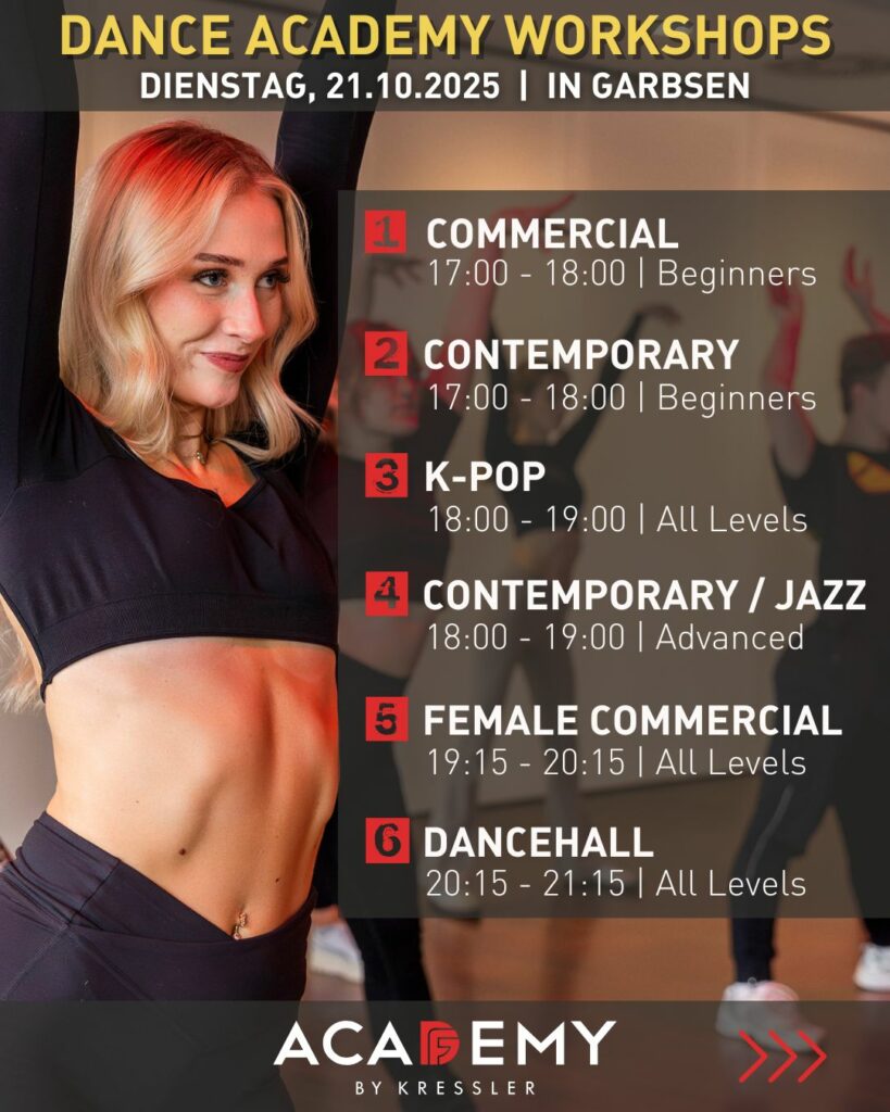 Commercial, Contemporary, K-Pop, Dancehall und mehr: Bei den Dance Academy Workshops ist für jeden Geschmack und jedes Level etwas dabei!